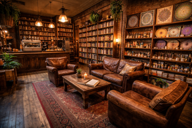Imagina que vas caminant pel barri de Gràcia de Barcelona. Sense un rumb fix. De sobte, veus un local petitet i una persona asseguda davant d'un taulell fent alguna cosa molt abstreta. No saps què fa, però et genera curiositat. T'apropes i veus que està creant un mandala. Dones un cop d'ull al local i et sorprèn un caos aparent que et genera, no saps per què, molta pau. Prestatges amb peces d'artesania que estan a la venda, una màquina de cafè i infusions. Uns prestatges plens de llibres que es nota que han estat llegits i rellegits. Unes butaques de cuiro desgastat on persones seuen de manera relaxada amb la seva tassa a la mà i llegeixen el llibre que avui han escollit. O el que fa dies que llegeixen cada cop que venen. Decideixes entrar a donar un cop d'ull i veus un cartell que diu "Club de Lectura", "Taller de Mandales", "Meditacions Guiades" i "Curs de Registres Akàshics" i les dates i horaris corresponents. No saps ben bé què és aquesta varietat de temes. I què són els Registres Akàshics. I, sense saber molt bé per què, entres. I la persona que està creant un mandala molt concentrada soc jo. Et saludo amb calidesa i t'ofereixo una infusió o un cafè. Tu contestes que només vols donar un cop d'ull. Jo et responc que ets benvinguda i continuo amb el meu mandala. La sensació que tens és d'estar en un lloc on els problemes queden enrere. On estàs a gust. On et vols quedar una estona. Així que dones un cop d'ull als llibres, esculls un, prens el cafè que t'he oferit i comences a llegir mentre, de tant en tant, dones una ullada a tota l'artesania que t'envolta. I te n'adones, de què has trobat el teu lloc per estar amb tu.